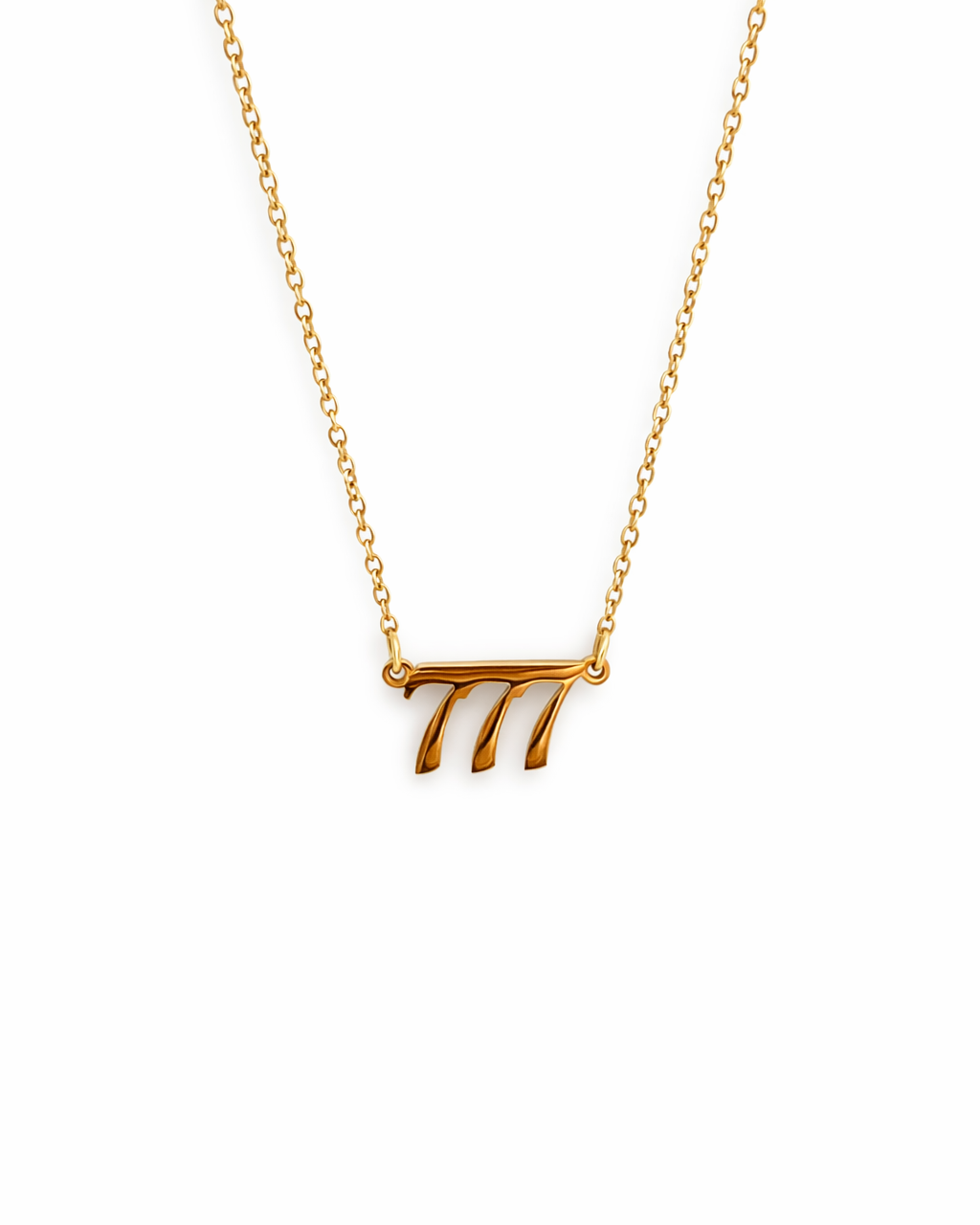 Vode a potu odolný náhrdelník vyrobený z nehrdzavejúcej ocele a pozlátený 18k zlatom. Náhrdelník je z našej kolekcie anjelských čísiel. Anjelské číslo 777 znamená, že má z vás vesmír radosť. Načúvajte vedeniu zhora.