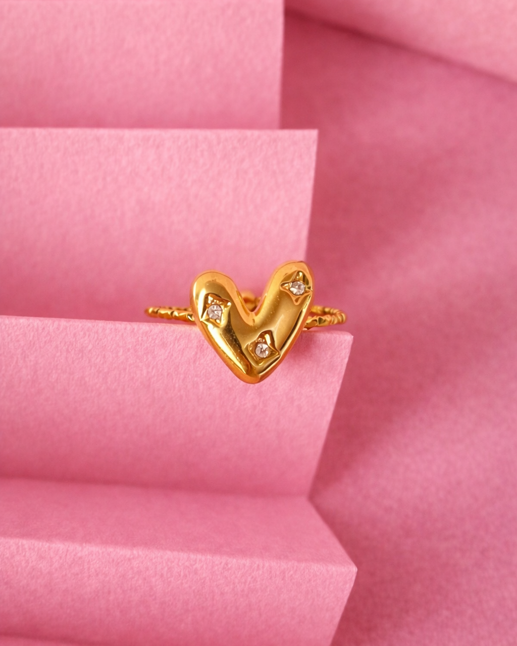 Jemný prsteň s rozkošným srdiečkom zdobeným trblietavými kamienkami, ktorý sa prispôsobí tvojej ruke vďaka nastaviteľnej veľkosti. Vyrobený z odolnej nehrdzavejúcej ocele s luxusným pozlátením 18k zlatom, ktoré mu dodáva elegantný lesk. Dokonalý doplnok na Valentínku sezónu alebo každý deň – či už si ho nosíš sama alebo ho daruješ niekomu špeciálnemu. Kombinuje jednoduchosť s romantickým nádychom a garantuje dlhodobú nositeľnosť bez straty lesku.
